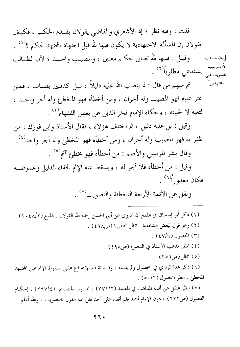 ونقل عن الأئمة الأربعة التخطئة والتصويب.
