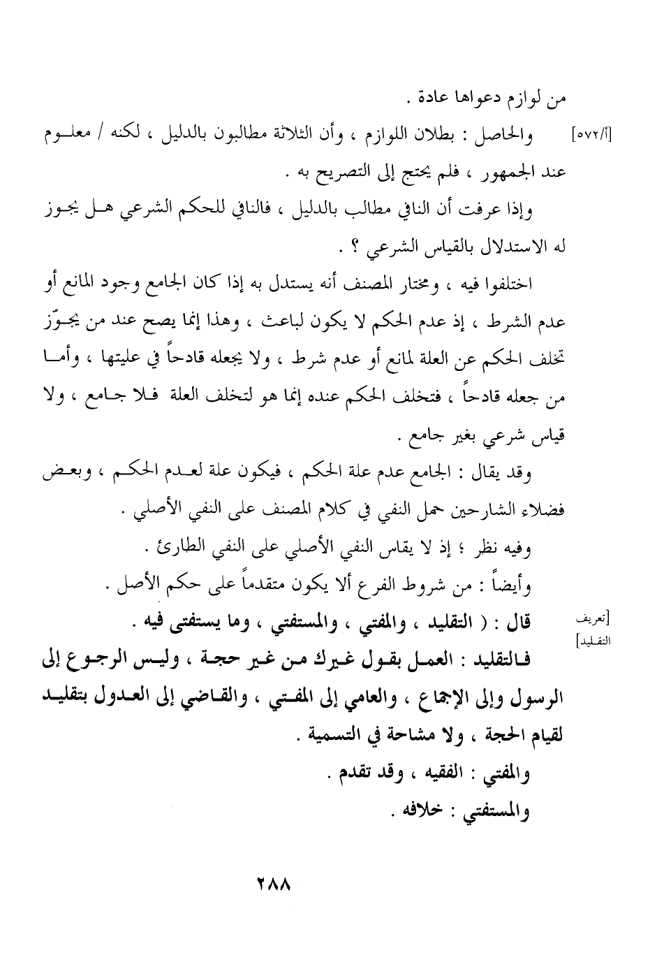 قال: (التقليد، والمفتي، والمستفتي، وما يستفتى فيه.