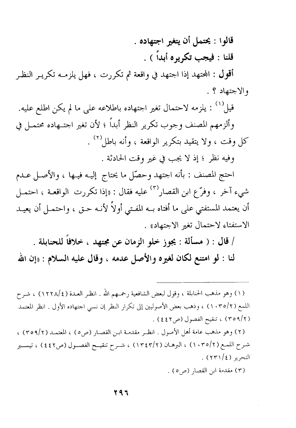 وألزمهم المصنف وجوب تكرير النظر أبدا؛ لأن تغير اجتهاده محتمل في كل وقت، ولا يتقيد بتكرير الواقعة، وأنه باطل.