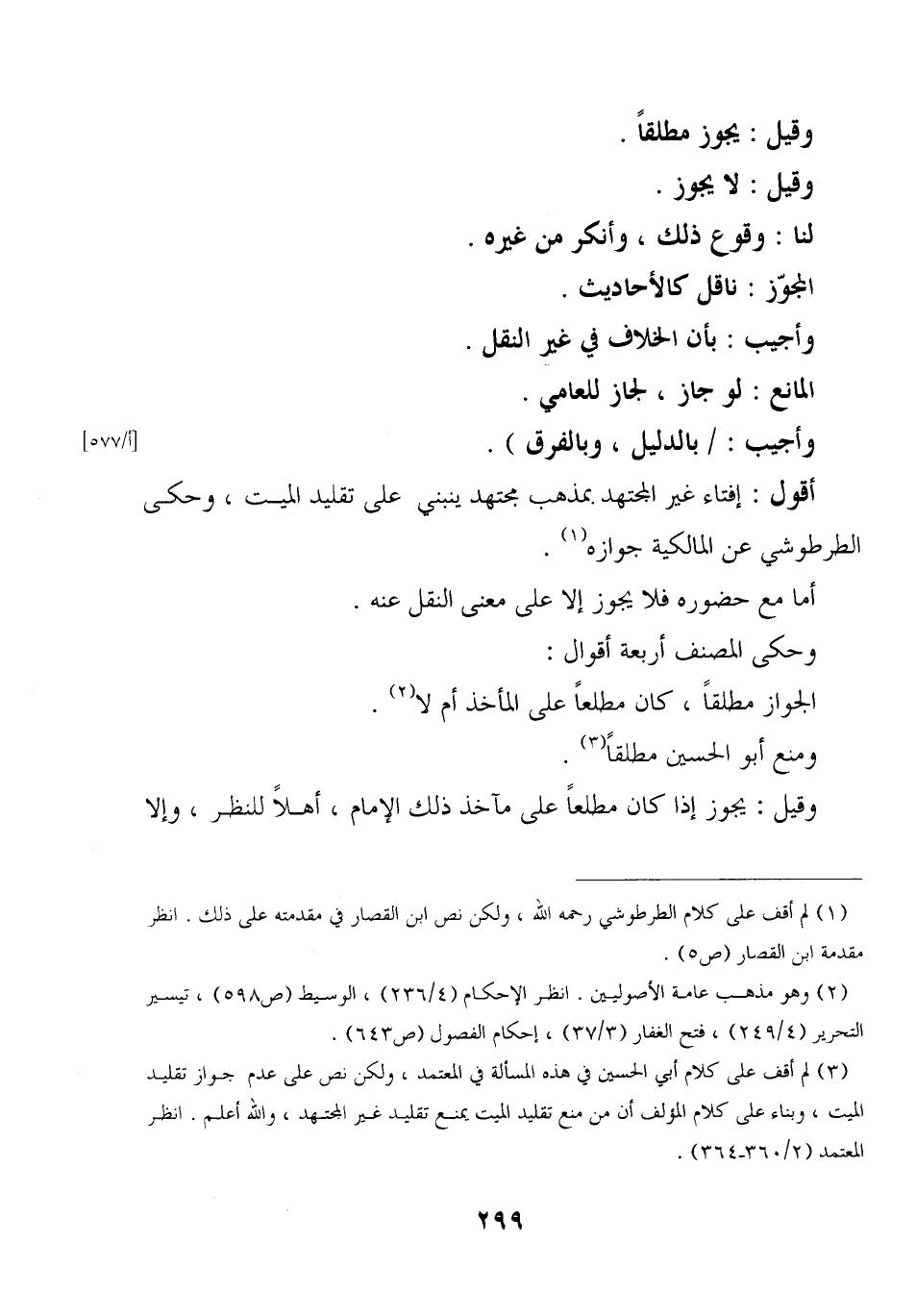 أقول: إفتاء غير المجتهد بمذهب مجتهد ينبني على تقليد الميت، وحكى الطرطوشي عن المالكية جوازه.
