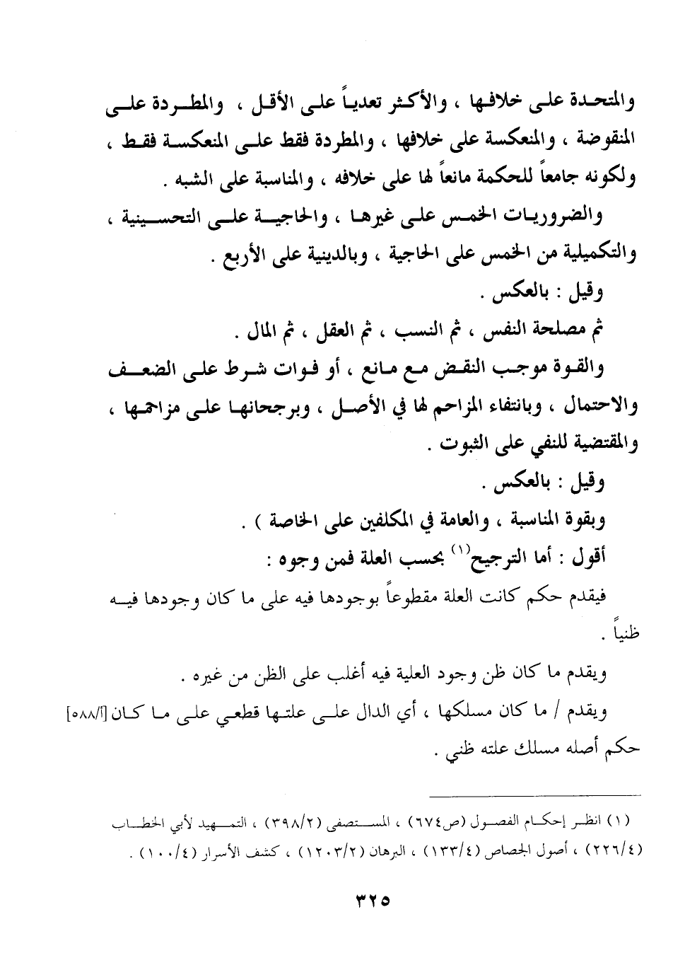 والمتحدة على خلافها، والأكثر تعديا على الأقل، والمطردة على المنقوضة، والمنعكسة على خلافها، والمطردة فقط على المنعكسة فقط، ولكونه جامعا للحكمة مانعا لها على خلافه، والمناسبة على الشبه.