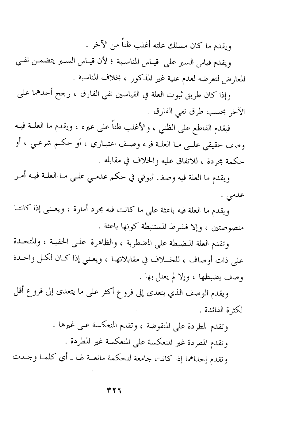 وتقدم العلة المنضبطة على المضطربة، والظاهرة على الخفية، والمتحدة على ذات أوصاف، للخلاف في مقابلاتها، ويعني إذا كان لكل واحدة وصف يضبطها، وإلا لم يعلل بها.