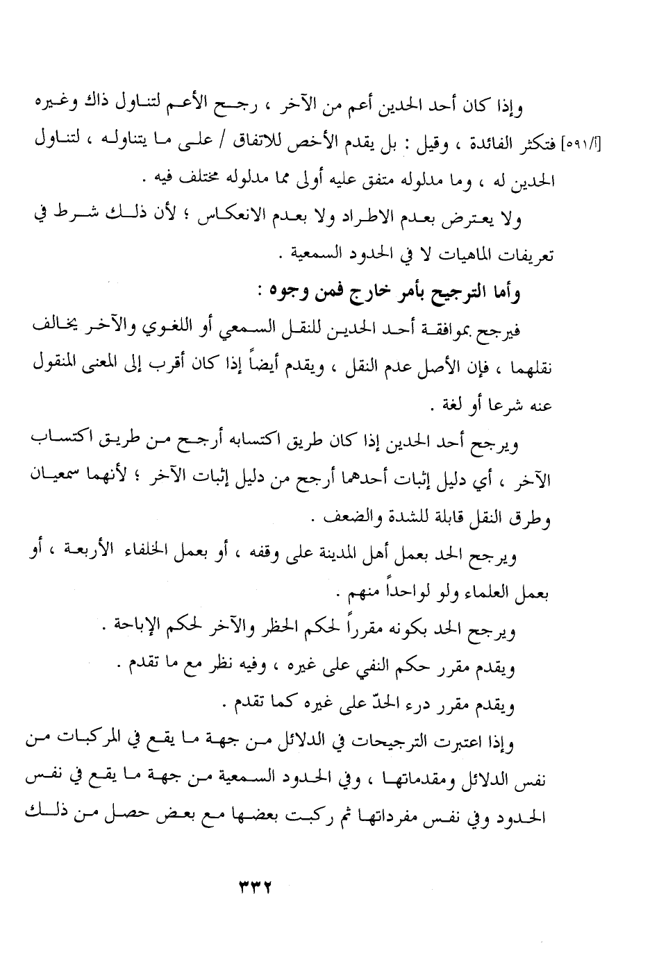 وإذا اعتبرت الترجيحات في الدلائل من جهة ما يقع في المركبات من نفس الدلائل ومقدماتها، وفي الحدود السمعية من جهة ما يقع في نفس الحدود وفي نفس مفرداتها ثم ركبت بعضها مع بعض حصل من ذلك