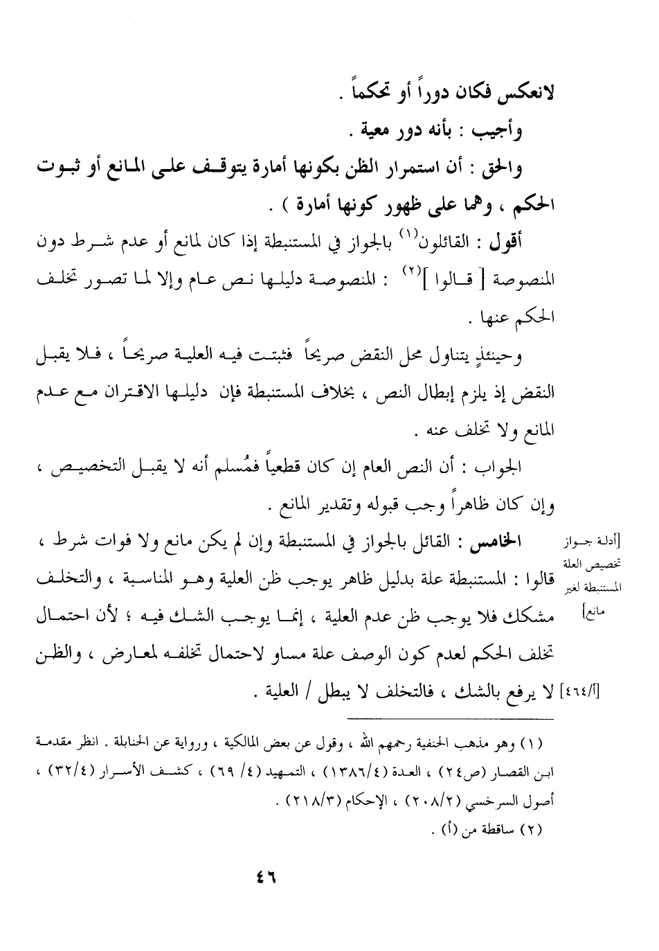 أقول: القائلون بالجواز في المستنبطة إذا كان لمانع أو عدم شرط دون المنصوصة [قالوا]: المنصوصة دليلها نص عام وإلا لما تصور تخلف الحكم عنها.