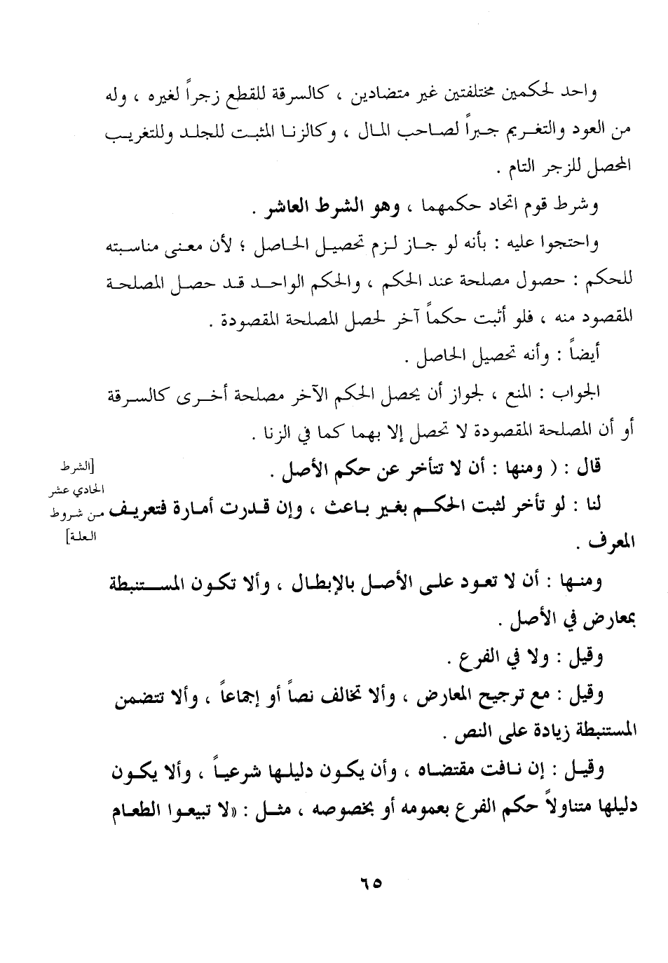 ومنها: أن لا تعود على الأصل بالإبطال، وألا تكون المستنبطة بمعارض في الأصل.