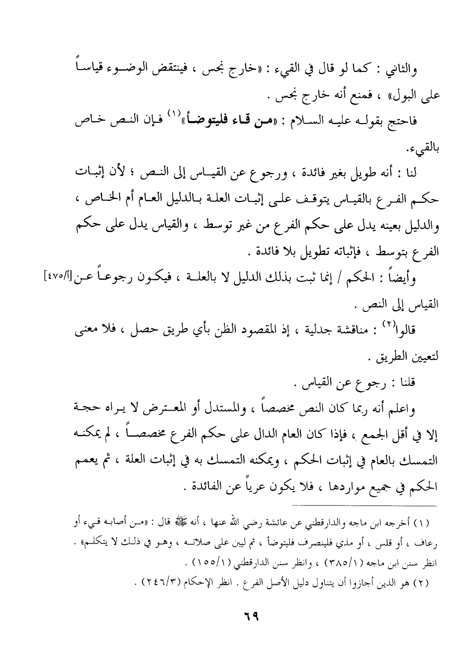 لنا: أنه طويل بغير فائدة، ورجوع عن القياس إلى النص؛ لأن إثبات حكم الفرع بالقياس يتوقف على إثبات العلة بالدليل العام أم الخاص، والدليل بعينه يدل على حكم الفرع من غير توسط، والقياس يدل على حكم الفرع بتوسط، فإثباته تطويل بلا فائدة.