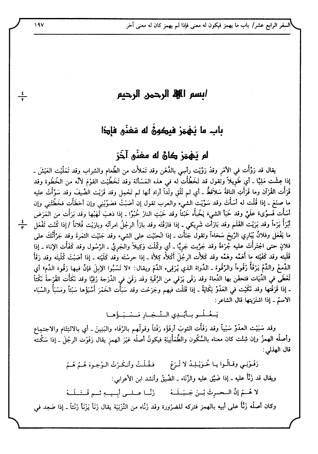 (بَاب مَا يُهمَز فَيكون لَهُ معنى فَإِذا لم يُهمَز كَانَ لَهُ معنى آخَر)