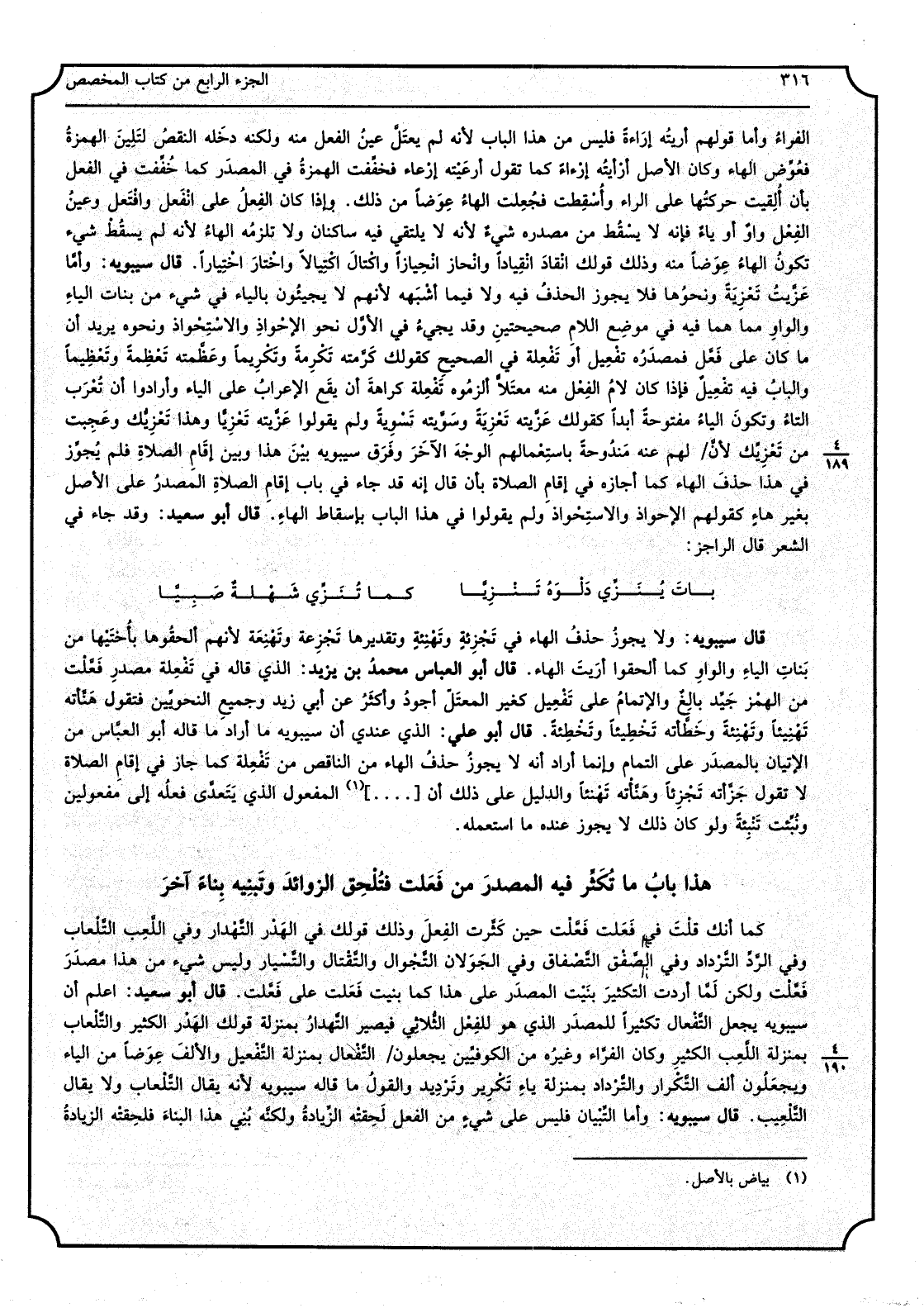 هَذَا بابُ مَا تُكَثِّرُ فِيهِ المصدرَ من فَعَلْت فتُلحِق الزوائدَ وتَبنيهِ بِنَاء آخر