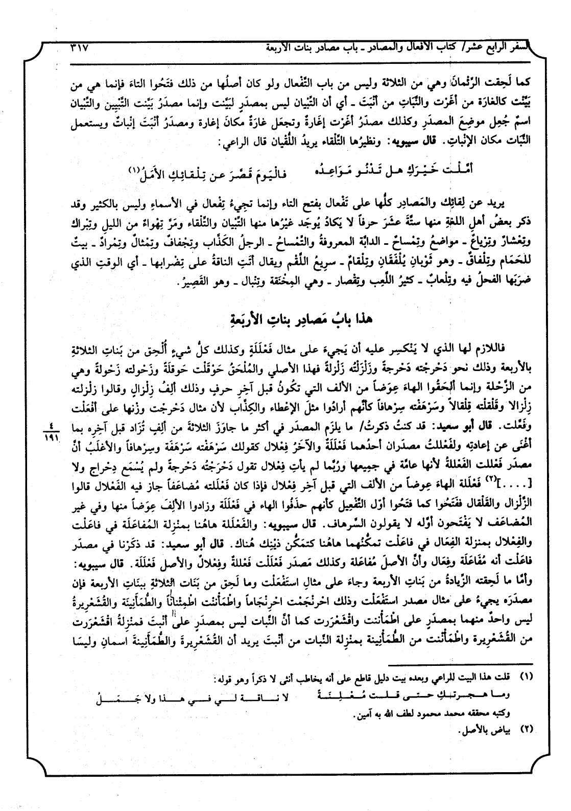 هَذَا بابُ مصادرِ بناتِ الأربعةِ