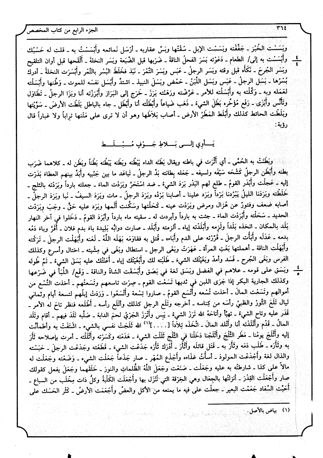 وبَسَسْت الخُبْز: جَفَّفْته، وبَسَسْت الْإِبِل: سُقتها، وبَسَّ عقاربه: أرسل نمائمه، وأَبْسَسْت بِهِ: قلت لَهُ حسْبُك، وأبسسْت بِهِ إِلَى الطَّعَام: دَعَوْته، بَسَرَ الفَحلُ النّاقة: ضربَها قبل الضَّبْعة، وبَسَرَ النَّخلة: أَلْقَحها قبل أَوَان التلقيح، وبَسَر الجُرْحَ: نَكأَه قبل وقته، وبَسَر الرجلُ: عبَسَ، وبَسَرَ التَّمْر: نَبَذَ فخلَطَ البُسْر بالتَّمر، وأبْسَرَت النَّخلة: أدْرك بُسْرُها، بَسَلَ الرجل: عَبَسَ، وبَسَل الَّلبَن: حَمُض، وبَسَل النَّبيذ: اشتدَّ، وأبْسَلَ نفسَه للْمَوْت: وطَّنَها، وأبْسَلْته لعمله وَبِه: وَكَّلْته بِهِ، وأبسلته لِلْأَمْرِ: عَرَّضْته ورَهَنْته، بَرَزَ: خرج إِلَى البَراز وأبْرَزْته أَنا، وبَزا الرَّجل: تطاوَل وتأنَّس وأَبْزى: رفعَ مُؤَخَّره، بَطَل الشَّيْء: ذهب ضَياعاً وأبطلته أَنا، وأبْطَل: جَاءَ بِالْبَاطِلِ، بَلَطْت الأرْضَ: سَوَّيْتها، وبَلَطْت الْحَائِط كَذَلِك، وأبْلَطَ الْمَطَر الأرضَ: أصابَ بَلاطَها وَهُوَ أَن لَا ترى على مَتْنِها تُرَابا وَلَا غُباراً قَالَ رؤبة: يَأْوي إِلَى بَلاطِ جَوْفٍ مُبْلَطِ وَبَطَنَت بِهِ الحُمَّى: أَي أثَّرَت فِي بَاطِنه وَيُقَال بَطَنه الدَّاء يَبْطُنه وبَطَنه يَبْطُنه بَطْناً وبَطَن لَهُ: كِلَاهُمَا ضَرَب بَطْنه وأبطن الرجلُ كَشْحَه سَيْفَه ولسيفه: جعله بِطانته، بَدَّ الرجل: تبَاعد مَا بَين جَنْبَيْهِ وأَبَدَّ بَينهم العطاءَ، بَدَرْت إِلَيْهِ: عَجلْت، وأَبْدَرَ الْقَوْم: طلع لَهُم البَدْر، بَرَدَ الشَّيْء: ضد استَحَرَّ، وبَرَدْت المَاء: جعلته بَارِدًا، وبَرَدْته بالثلج: خلَطْته، وبَرَدَنا اللَّيْل يَبْرُدنا بَرْداً وبَرَد علينا: أصابَنا بَرْدُه، وبَرَد الرجل: مَاتَ، وبَرَد السَّيْف: نَبا، وبَرَد الرجل: أَصَابَهُ ضَعْفٌ وفُتورٌ عَن هُزال وَمرض، وبَرَدْت عينه: كَحَلْتها وسكَّنْت ألَمها، وبَرَدَ عَلَيْهِ حَقٌّ: وَجَبَ، وبَرَدْت الْحَدِيد: سحَلْته، وأَبْرَدْت المَاء: جِئت بِهِ بَارِدًا، وأبرَدت لَهُ: سقيته مَاء بَارِدًا، وأبرَدَ الْقَوْم: دخلُوا فِي آخر النَّهَار، بَلَدَ بِالْمَكَانِ: اتَّخَذَه بَلَدا ولَزمه، وأبْلَدْته إِيَّاه: ألزَمْته، وأَبْلَدَ: صَارَت دوابُّه بليدَة، باءَ بِدَم فلَان: أَقَرَّ، وباءَ دمُه بدمه: عَدَلَه، وأّبأت الرجل: قَرَّرْته على الدَّم، وأَبَاءه: قُتِل بِهِ فقاومه، بَهَلَه الله: لَعنه، وأبْهَلْت الرجل: ترَكْته، وأبْهلْت النَّاقة: أهمَلْتها، بَغَتِ الْمَرْأَة: عَهَرَت، وبَغَى الرجل: استطال، وبَغى فِي مِشْيَته: اختال وأسرع وَكَذَلِكَ الْفرس، وبغى الجُرح: فَسَد وأَمَدَّ، وبَغَيْتك الشَّيْء: طلبْته لَك، وأبْغَيْتك إِيَّاه: أَعَنْتك عَلَيْهِ، بَسَقَ الشيءُ: تَمَّ طوله، وبَسَقَ على قومه: عَلاهم فِي الْفضل وبسق لُغَة فِي بَصَق، وأَبْسَقَت الشّاة والنّاقة: وقَعَ الِّلبَأ فِي ضَرْعها وَكَذَلِكَ الْجَارِيَة الْبكر إِذا جرى اللَّبن فِي ثديها، تَسَعْت الْقَوْم: صِرْت تاسعهم، وتَسَعْتهم: أخذت التُّسْع من أَمْوَالهم، وتَسَعْت المَال: أخذت تُسْعه، وأَتْسَعَ الْقَوْم: صَارُوا تِسْعَة، وأَتْسَعوا: وَرَدَت إبلهم لتسعة أَيَّام وثماني لَيَال، تَلَعَ الثَّوْرُ والظَّبْيُ رأسَه من كِناسِه: أخرجه وتلع الرجل كَذَلِك، وأتلعَ رأْسَه: أَطْلَعه فَنظر، تاحَ لَهُ الْأَمر: قَدَرَ عَلَيْهِ، وتاحَ الشيءُ: تَهَيَّأ وأتاحه الله، تَرَزَ الشَّيْء: يَبِس، وأتْرَزَ الجَرْيُ لَحم الدّابة: صَلَّبه، تَلَدَ فيهم: أَقام، وتَلَدَ المَال: قَدُمَ، وأتْلَدْته أَنا وأتلد المالَ: اتَّخَذَه تِلادا الله، ثَلَجَتْ نَفسِي بالشَّيْء: اشْتَفَتْ بِهِ واطمأنَّت إِلَيْهِ، وأَثْلَجَ يومُنا: مَطَر الثّلج، وأثْلَجْنا: دَخَلنَا فِي الثَّلج، ثَلَلْت الشَّيْء: هدَمْته وكَسَرْته، وأثْلَلْته: أمَرت بإصلاحه، ثَأَرَ بِهِ وثَأَرَه: طلَبَ دمَه، وثَأَر بِهِ: قَتَل قاتِله، وأَثْأ