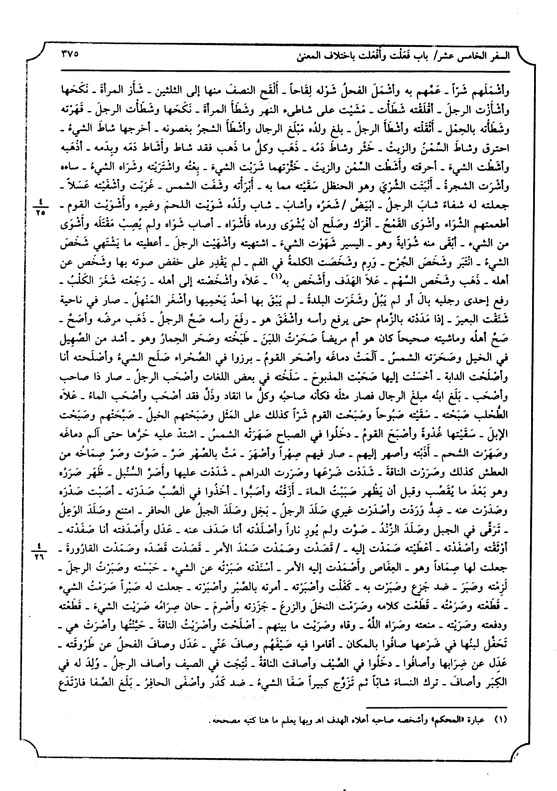 وأَشْمَلَهم شرَّاً: عمَّهم بِهِ وأَشْمَل الفحلُ شَوْلَه لِقاحاً: أَلْقَح النصفَ مِنْهَا إِلَى الثُّلثَيْنِ. شَأَزَ المرأةَ: نَكَحَها وأَشْأَزْت الرجلَ: أَقْلَقْته. شَطَأْت: مَشَيْت على شاطئ النَّهر وشَطَأَ المرأةَ: نَكَحَها وشَطَأْت الرجلَ: قَهَرْته وشَطَأْته بالحِمْل: أَثْقَلْته وأَشْطَأَ الرجلُ: بلغ ولدُه مَبْلَغ الرِّجَال وأَشْطَأَ الشجرُ بغصونه: أخرجهَا. شاطَ الشيءُ: احْتَرَقَ. وشاطَ السَّمنُ والزيتُ: خثُر وشاطَ دمُه: ذَهَبَ وكلُّ مَا ذهبَ فقد شاطَ وأَشاطَ دَمَه وبِدَمِه: أذْهَبه وأَشَطْت الشيءَ: أحرقتُه وأَشَطْت السَّمْنَ والزيتَ: خَثَّرْتُهما. شَرَيْت الشيءَ: بِعْته واشْتَرَيْته وشَراه الشيءُ: سَاءَهُ وأَشْرَت الشجرةُ: أَنْبَتَتْ الشَّرْيَ وَهُوَ الحنظل. شَفَيْته مِمَّا بِهِ: أَبْرَأْته وشَفَت الشمسُ: غَرَبَت وأَشْفَيْته عسلاً: جعلته لَهُ شِفَاء. شابَ الرجلُ: ابْيَضَّ شعره وأشابَ: شابَ ولَدُه. شَوَيْت اللحمَ وَغَيره وأَشْوَيْت الْقَوْم: أطعمتهم الشِّواء وأَشْوَى القمحُ: أَفْرَك وصَلَحَ أَن يُشوى ورماه فَأَشْواه: أصَاب شَواه وَلم يُصِبْ مَقْتَلَه. وأَشْوَى من الشَّيْء: أَبْقَى مِنْهُ شُوايةً وَهُوَ: الْيَسِير. شَهَوْت الشيءَ: اشْتَهَيْته وأَشْهَيْت الرجلَ: أَعْطَيْته مَا يَشْتَهي. شَخَصَ الشيءُ: انْتَبَر وشَخَصَ الجرحُ: وَرِمَ وشَخَصَت الكلمةُ فِي الْفَم: لم يَقْدِر على خفض صَوته بهَا، وشَخَصَ عَن أَهله: ذَهَبَ وشَخَصَ السهمُ: عَلا الهدف وأَشْخَص بِهِ: عَلاه وأَشْخَصْته إِلَى أَهله: رَجَعْته. شَغَرَ الكلبُ: رفع إِحْدَى رجلَيْهِ بَال أَو لم يبُل وشَغَرَت البلدةُ: لم يَبْقَ بهَا أحدٌ يَحميها وأَشْغَر المَنْهلُ: صَار فِي نَاحيَة. شَنَقْت البعيرَ: إِذا مَدَدْته بالزِّمام حَتَّى يرفع رَأسه وأَشْنَقَ هُوَ: رفع رَأسه. صحَّ الرجلُ: ذَهَبَ مرضُه وأَصَحَّ: صَحَّ أهلُه وماشيته صَحِيحا كَانَ هُوَ أم مَرِيضا. صَحَرْتُ اللبنَ: طَبَخْته وصَحَرَ الحمارُ وَهُوَ: أَشد من الصهيل فِي الْخَيل وصَحَرَته الشمسُ: آَلَمَت دماغه وأَصْحَر القومُ: برزوا فِي الصَّحْراء صَلَحَ الشيءُ وأَصْلَحْته أَنا وأَصْلَحْت الدَّابَّة: أَحْسَنتُ إِلَيْهَا. صَحَبْت المذبوحَ: سَلَخْته فِي بعض اللُّغَات وأَصْحَب الرجلُ: صَار ذَا صَاحب وأَصْحَب: بَلَغَ ابنُه مبلغَ الرِّجَال فَصَارَ مثله فَكَأَنَّهُ صاحبُه وكلُّ مَا انْقَادَ وذلَّ فقد أَصْحَب وأَصْحَب الماءُ: عَلاه الطُّحْلُب. صَبَحْته: سَقَيْته صَبوحاً وصَبَحْت الْقَوْم شرَّاً كَذَلِك على المَثَل وصَبَحْتهم الخيلُ: صَبَّحَتْهم وصَبَحْت الإبلَ: سَقَيْتها غُدْوةً وأَصْبَح القومُ: دخلُوا فِي الصَّباح. صَهَرَته الشمسُ: اشْتَدَّ عَلَيْهِم حرُّها حَتَّى آلم دماغَه وصَهَرْت الشَّحْم: أَذَبْته وأَصْهَر إِلَيْهِم: صَار فيهم صِهْراً وأَصْهَرَ: مَتَّ بالصِّهْر. صَرَّ: صوَّت وصَرَّ صِماخُه من الْعَطش كَذَلِك وصَرَرْت الناقةَ: شَدَدْت ضَرْعَها وصَرَرْت الدَّرَاهِم: شَدَدْت عَلَيْهَا، وأصَرَّ السُّنْبُل: ظهرَ صَرَرُه وَهُوَ بعدَ مَا يُقَصِّب وَقبل أَن يَظْهَر. صَبَبْت الماءَ: أَرَقْتهُ وأصَبُّوا: أخذُوا فِي الصَّبِّ. صَدَرْته: أَصَبْت صَدْرَه وصَدَرْت عَنهُ: ضِدُّ وَرَدْت وأَصْدَرت غَيْرِي. صَلَدَ الرجلُ: بَخِلَ وصَلَدَ الجبلُ على الْحَافِر: امْتنع وصَلَدَ الوَعِلُ: ترقَّى فِي الْجَبَل وصَلَدَ الزَّنْدُ: صوَّت وَلم يورِ نَارا وأَصْلَدْته أَنا. صَدَفَ عَنهُ: عَدَلَ وأَصْدَفْته أَنا. صَفَدْته: أَوْثَقْته وأَصْفَدْته: أَعْطَيْته. صَمَدْت إِلَيْهِ: قَصَدْت وصَمَدْت. صَمَدَ المر: قَصَدْت قَصْدَه وصَمَدْت القارورةَ: جعلت لَهَا صِماداً وَهُوَ: العِفاص وأَصْمَدْت إِلَيْهِ الْأَمر: أَسْنَدْته. صَبَرْتهُ عَن الشَّيْء: حَبَسْته وصَبَرْت الرجلَ: لَزِمْته وصَبَرَ: ضد جَزِعَ وصَبَرْت بِهِ: كَفَلْت وأَصْبَرتهُ: أَمرته بِالصبرِ