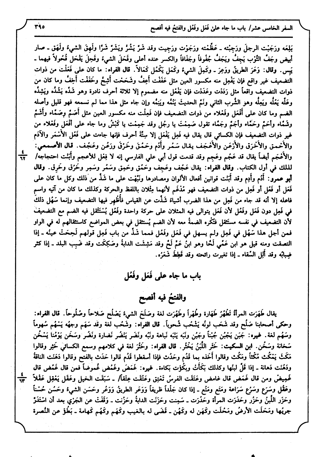 (بَاب مَا جَاءَ على فَعَل وفَعُل والفتحُ فِيهِ أفْصح)