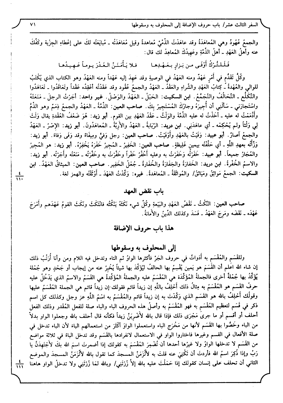 (هَذَا بَاب حُرُوف الإِضافة إِلَى الْمَحْلُوف بِهِ وسقوطها)