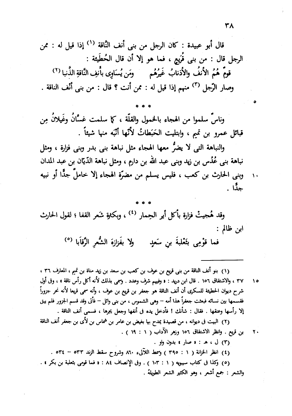 قال ابوعبيدة كان الرجل من بني أنف الناقة اذا قيل له ممن الرجل قال من بني قريع فما هو الا ان قال الحطيئة