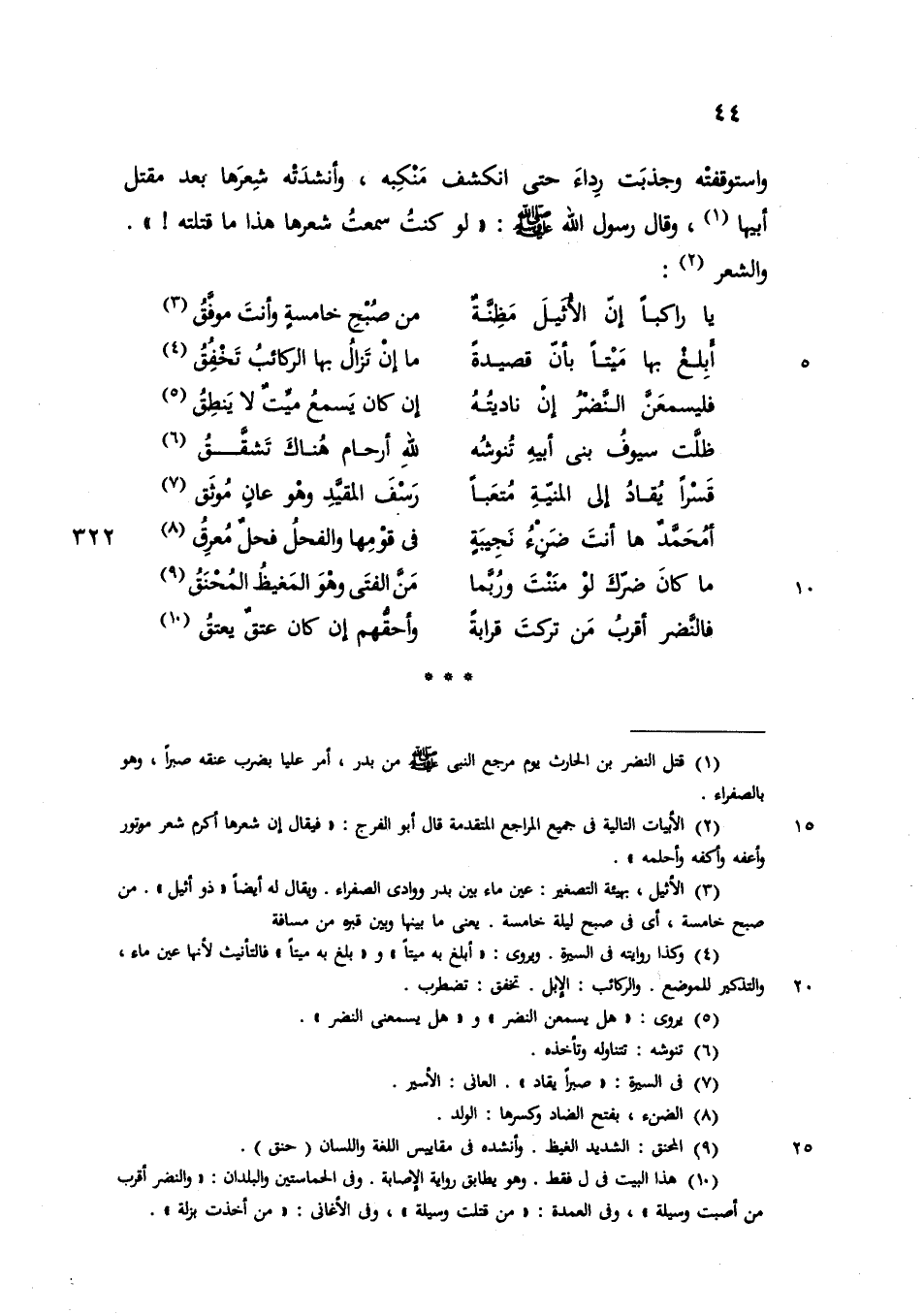 (فليسمعن النضر ان ناديته ... ان كان يسمع ميت لا ينطق)