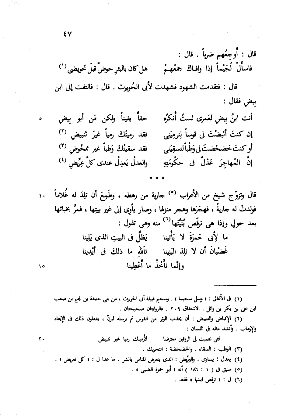 قال فتقدمت الشهود فشهدت لأبي الحويرث قال فالتفت الى ابن بيض فقال