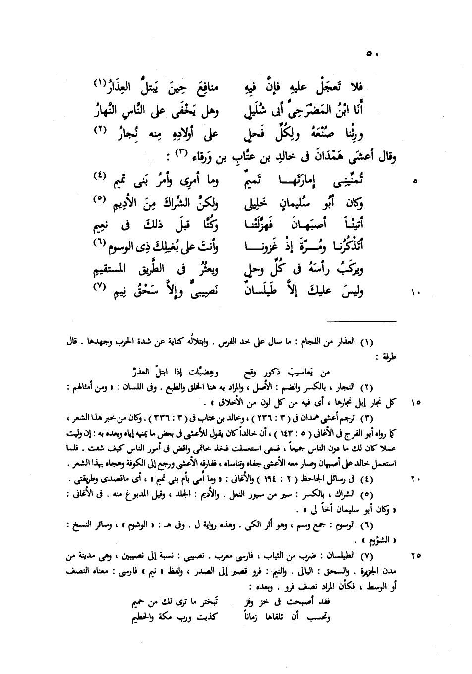 (انا ابن المضرحي ابي شليل ... وهل يخفي على الناس النهار)