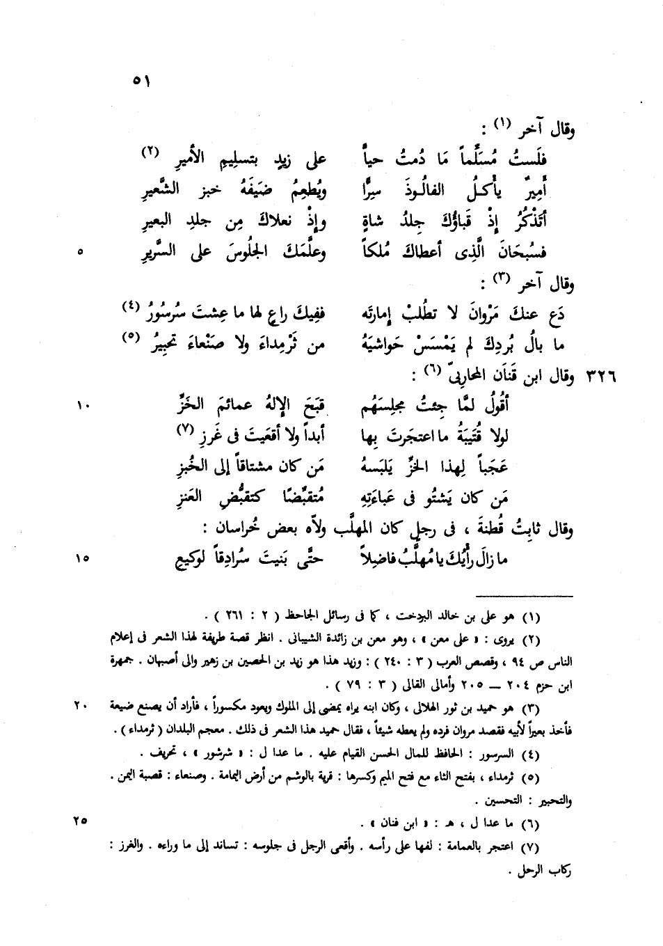 (وأقول لما جئت مجلسهم ... قبح الإله عمائم الخز)