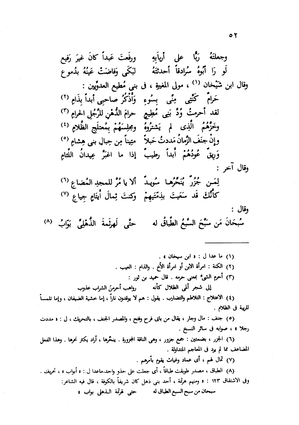 (سبحان من سبح السبع الطباق له ... حتى لهرثمة الذهلي أبواب) @