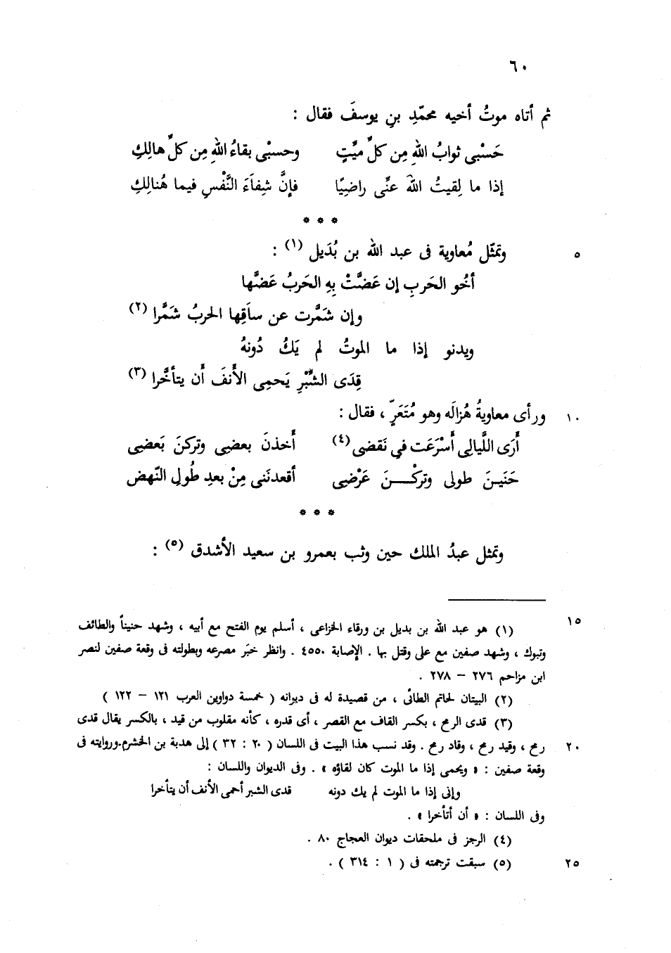 (حسبي ثواب الله من كل ميت ... وحسبي بقاء الله من كل هالك)
