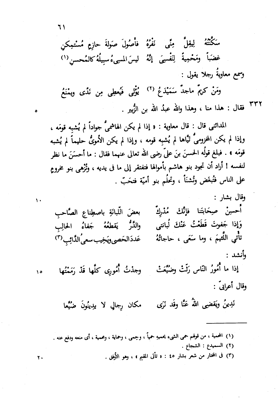 (وحميته عضبا لنفسي انه ... ليس المسيء سبيله كالمحسن)