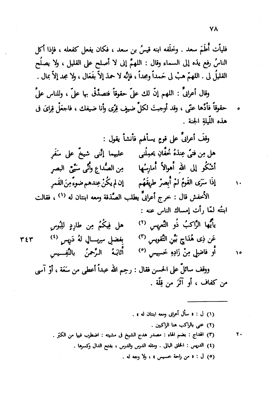 قال الاخفش خرج اعرابي يطلب الصدقة ومعه ابنتان له فقالت ابنته لما رأت امساك الناس عنه