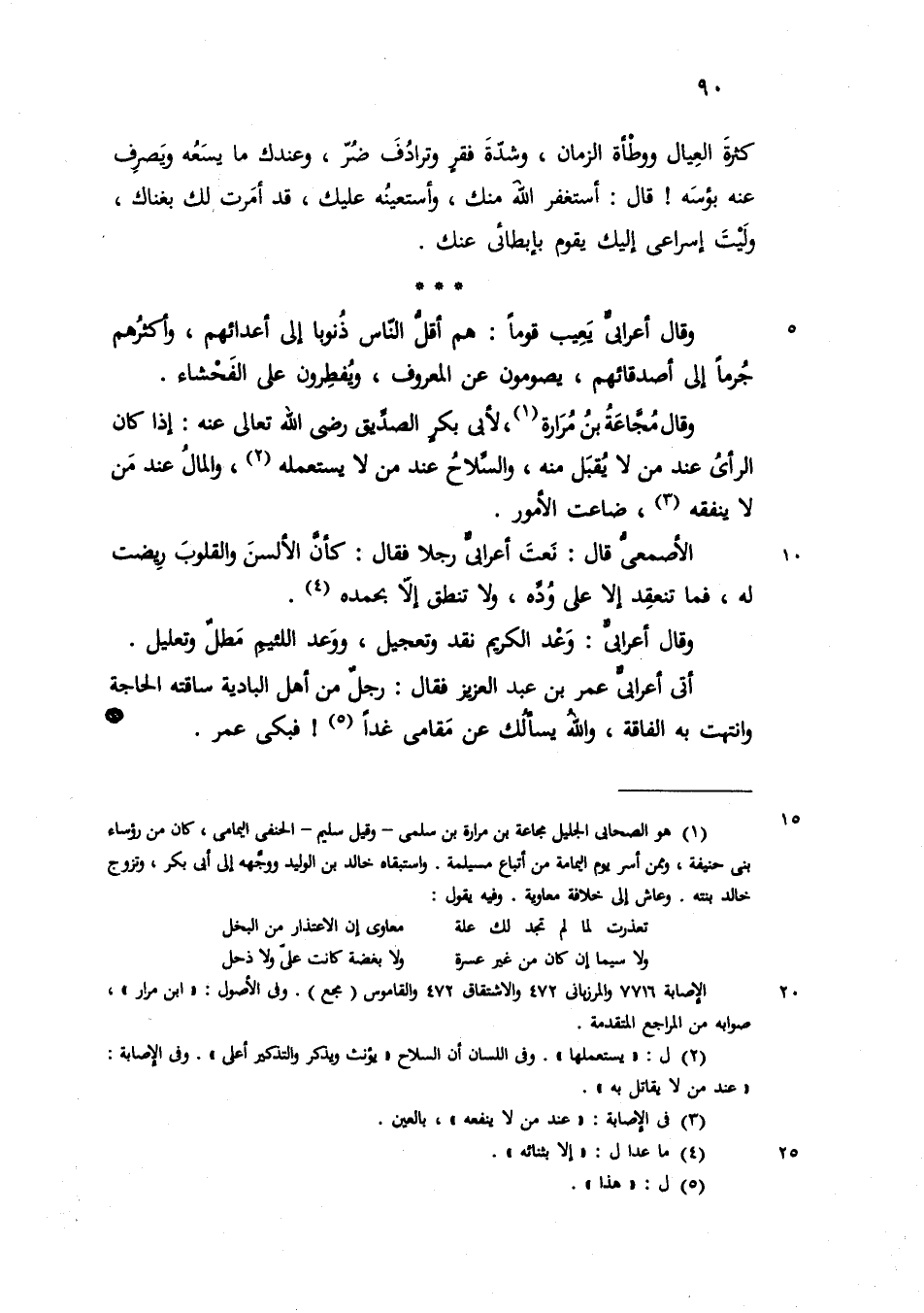وقال مجاعة بن مرار لأبي بكر الصديق رضي الله تعالى عنه اذا كان الرأي عنه من لا يقبل منه والسلاح عند من لا يستعمله وكان المال عند من لا ينفقه ضاعت الأمور