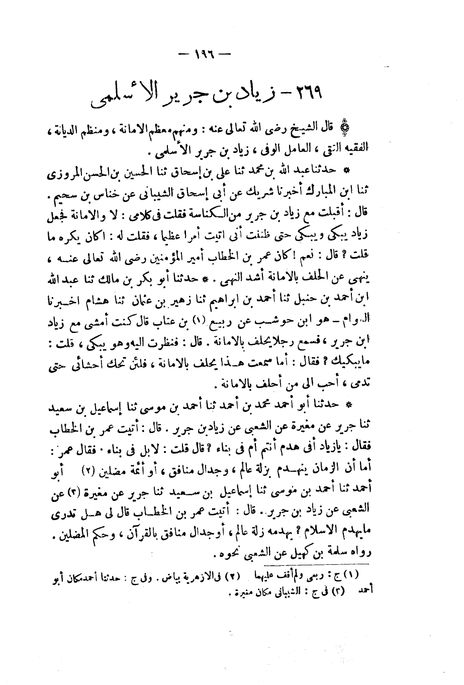 §زِيَادُ بْنُ جَرِيرٍ الْأَسْلَمِيُّ قَالَ الشَّيْخُ رَضِىَ اللهُ تَعَالَى عَنْهُ: وَمِنْهُمْ مُعَظِّمُ الْأَمَانَةِ، وَمُنَظِّمُ الدِّيَانَةِ، الْفَقِيهُ التَّقِيُّ، الْعَامِلُ الْوَفِيُّ: زِيَادُ بْنُ جَرِيرٍ الْأَسْلَمِيُّ