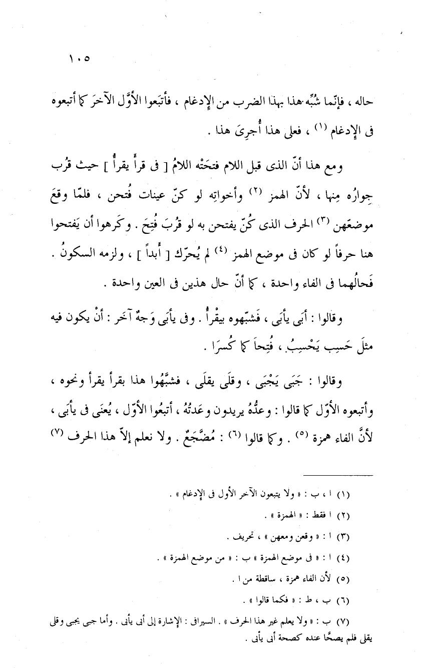 ومع هذا أن الذي قبل اللام فتحته اللام في قرأ يقرأ حيث قرب جواره منها، لأن الهمز وأخواته لو كن عينات فتحن، فلما وقع موضعهن، الحرف الذي كن يفتحن به لو قرب فتح. وكرهوا أن يفتحوا هنا حرفاً لو كان في موضع الهمز لم يحرك أبداً، ولزمه السكون. فحالهما في الفاء واحدة، كما أن حال هذين في العين واحدة.