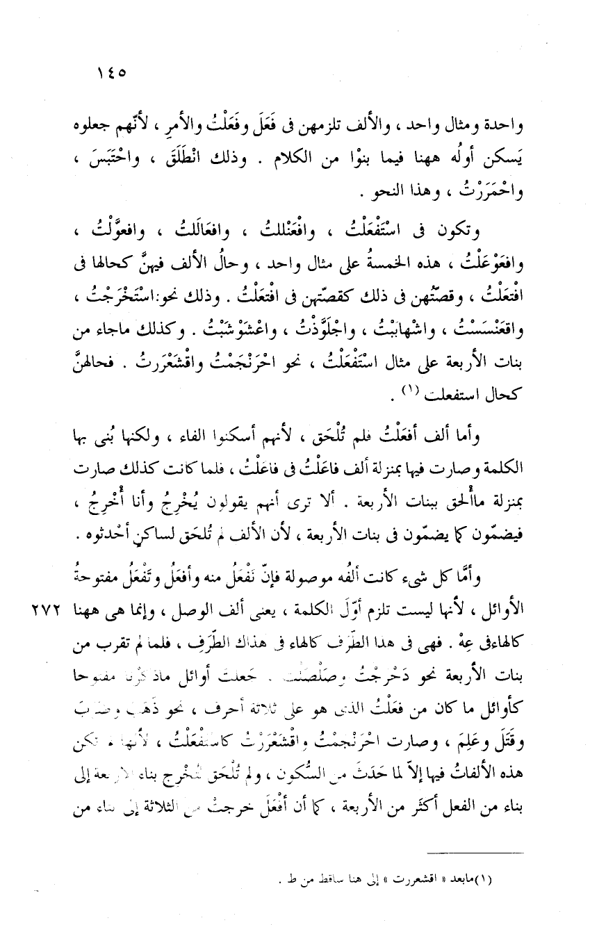 واحدةٍ ومثالٍ واحد، والألف تلزمهن في فعل وفعلت والأمر، لأنهم جعلوه يسكن أوله ههنا فيما بنوا من الكلام. وذلك انطلق، واحتبس، واحمررت، وهذا النحو.