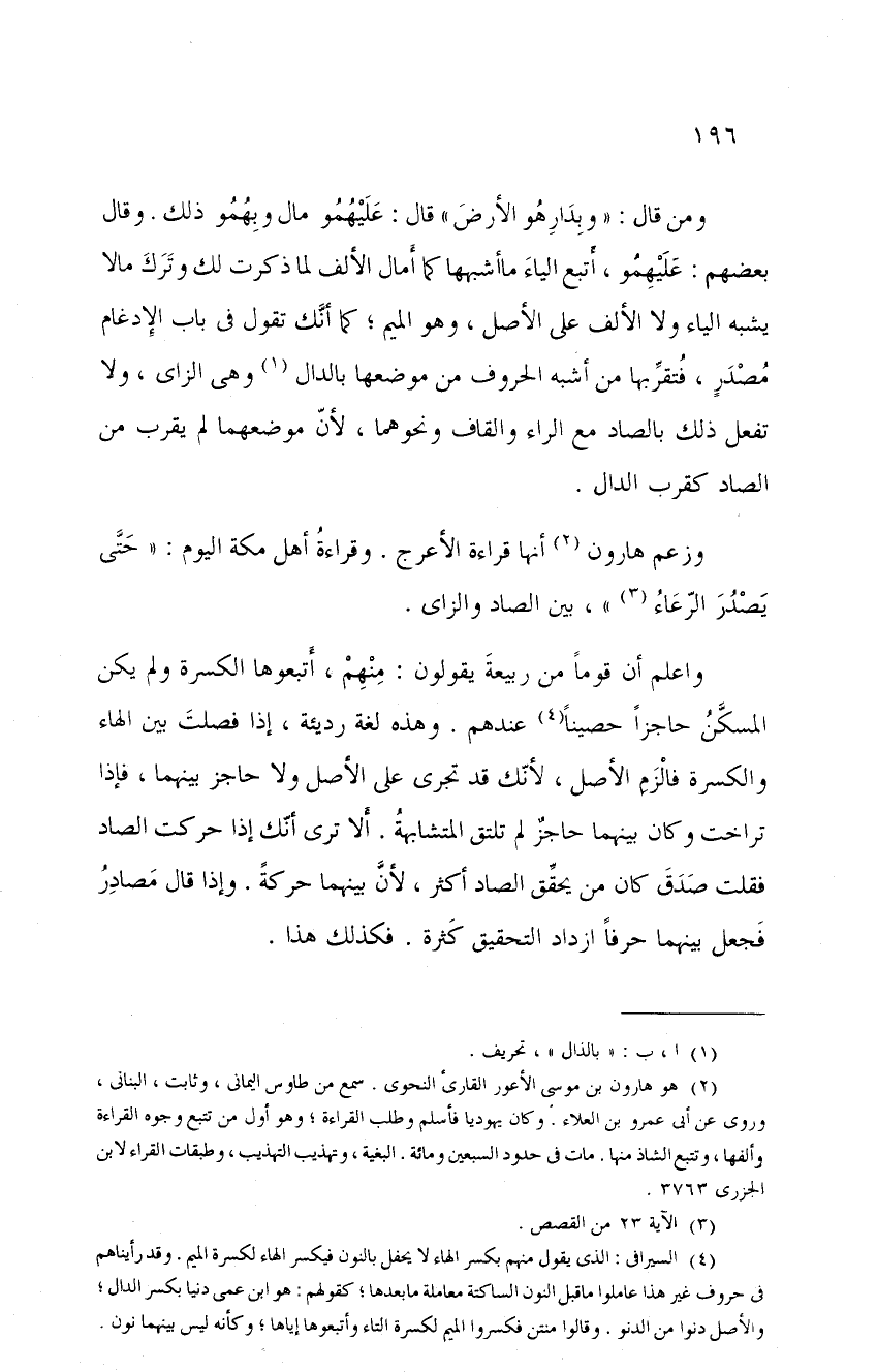 وزعم هارون أنها قراءة الأعرج. وقراءة أهل مكة اليوم: " حتى يصدر الرعاء " بين الصاد والزاي.