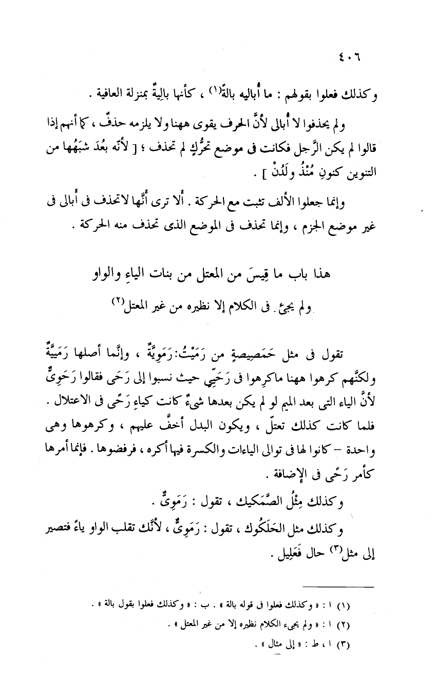 وكذلك مثل الحلكوك تقول رمويٌّ، لأنك تقلب الواو ياءً فتصير إلى مثل حال فعليل.