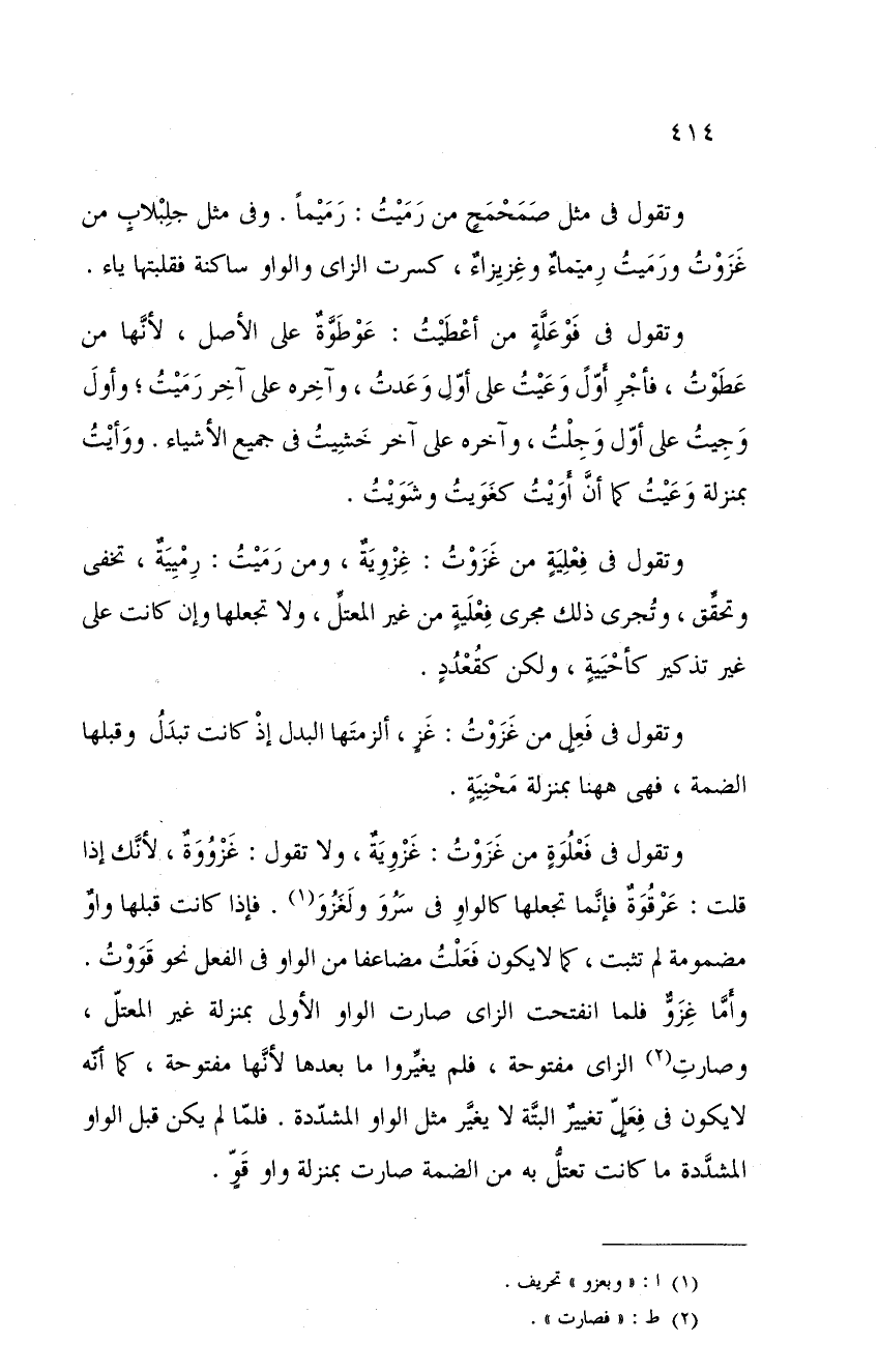 وتقول في فعلٍ من غزوت: غزٍ، ألزمتها البدل إذ كانت تبدل وقبلها الضمة، فهي ههنا بمنزلة محنيةٍ.