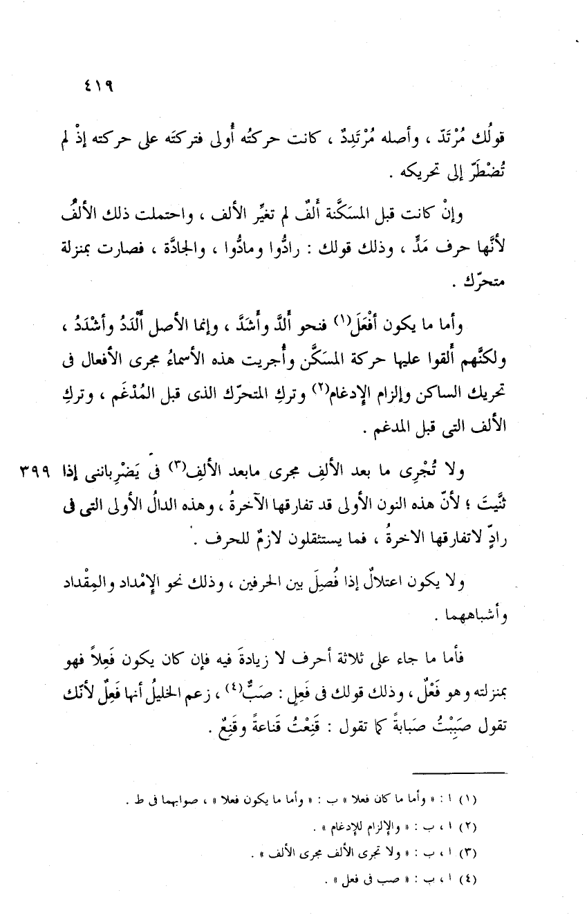وأما ما يكون أفعل فنحو ألد وأشد، وإنما الأصل ألدد وأشدد، ولكنهم ألقوا عليها حركة المسكن وأجريت هذه الأسماء مجرى الأفعال في تحريك الساكن وإلزام الإدغام وترك المتحرك الذي قبل المدغم، وترك الألف التي قبل المدغم.