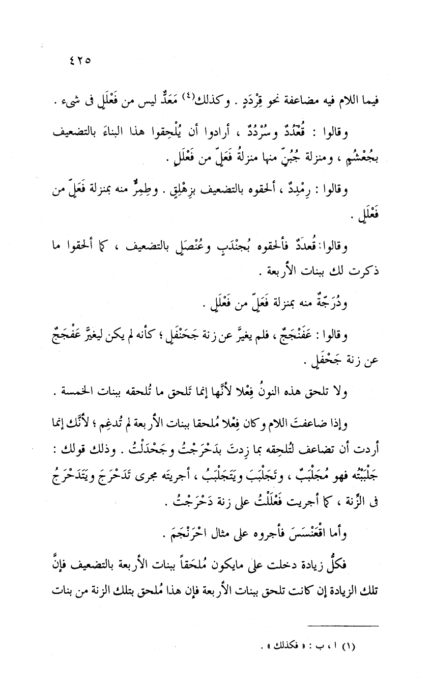 وقالوا: عفنججٌ، فلم يغير عن زنة جحنفلٍ؛ كأنه لم يكن ليغير عفججٌ عن زنة جحفلٍ.