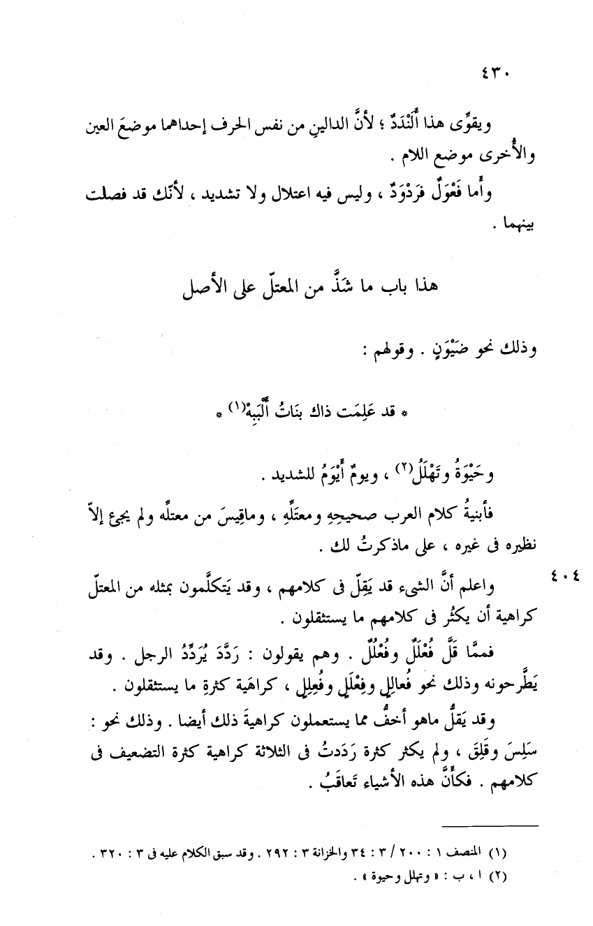 فأبنية كلام العرب صحيحة ومعتلة، وما قيس من معتله ولم يجىء إلا نظيره في غيره، على ما ذكرت لك.