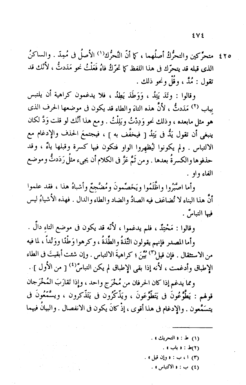 وأما اصبروا واظلموا ويخصمون ومضجعٌ وأشباه هذا فقد علموا أن هذا البناء لا تضاعف فيه الصاد والضاد والطاء والدال. فهذه الأشياء ليس فيها التباسٌ.