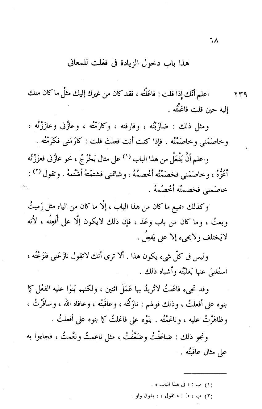 اعلم أنك إذا قلت: فاعلته، فقد كان من غيرك إليك مثل ما كان منك إليه حين قلت فاعلته.