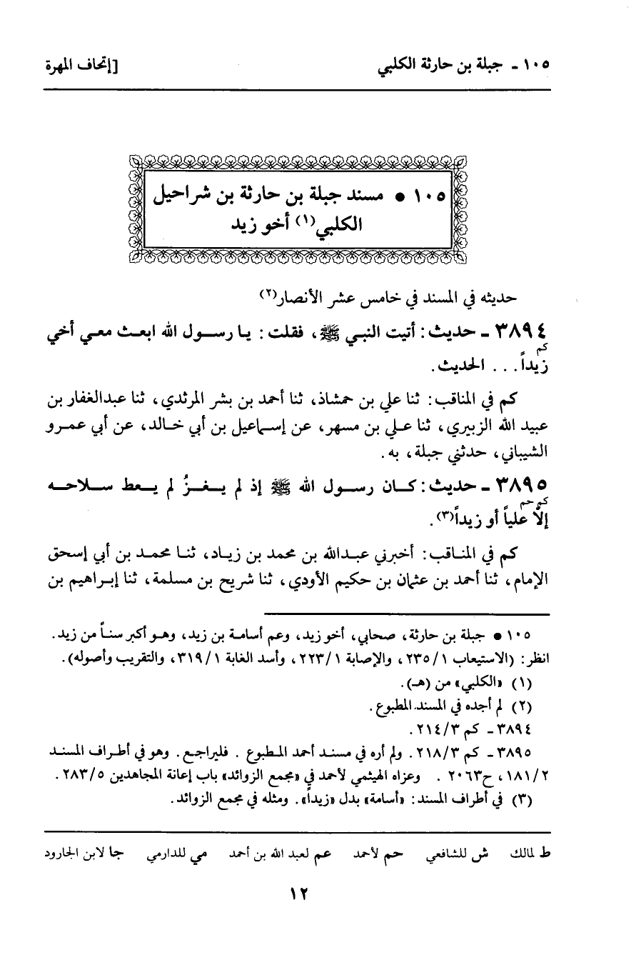 105 ـ مُسْنَدُ جَبَلَةَ بْنِ حَارِثَةَ بْنِ شَرَاحِيلَ الْكَلْبِيِّ، أَخُو زَيْدٍ