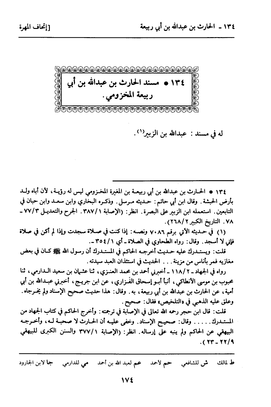 134 ـ مُسْنَدُ الْحَارِثِ بْنِ عَبْدِ اللَّهِ بْنِ أَبِي رَبِيعَةَ الْمَخْزُومِيِّ.