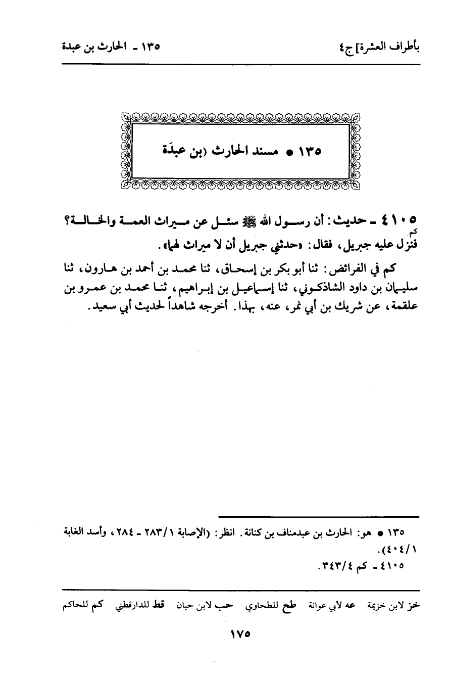 135 ـ مُسْنَدُ الْحَارِثِ بْنِ عَبْدَةَ