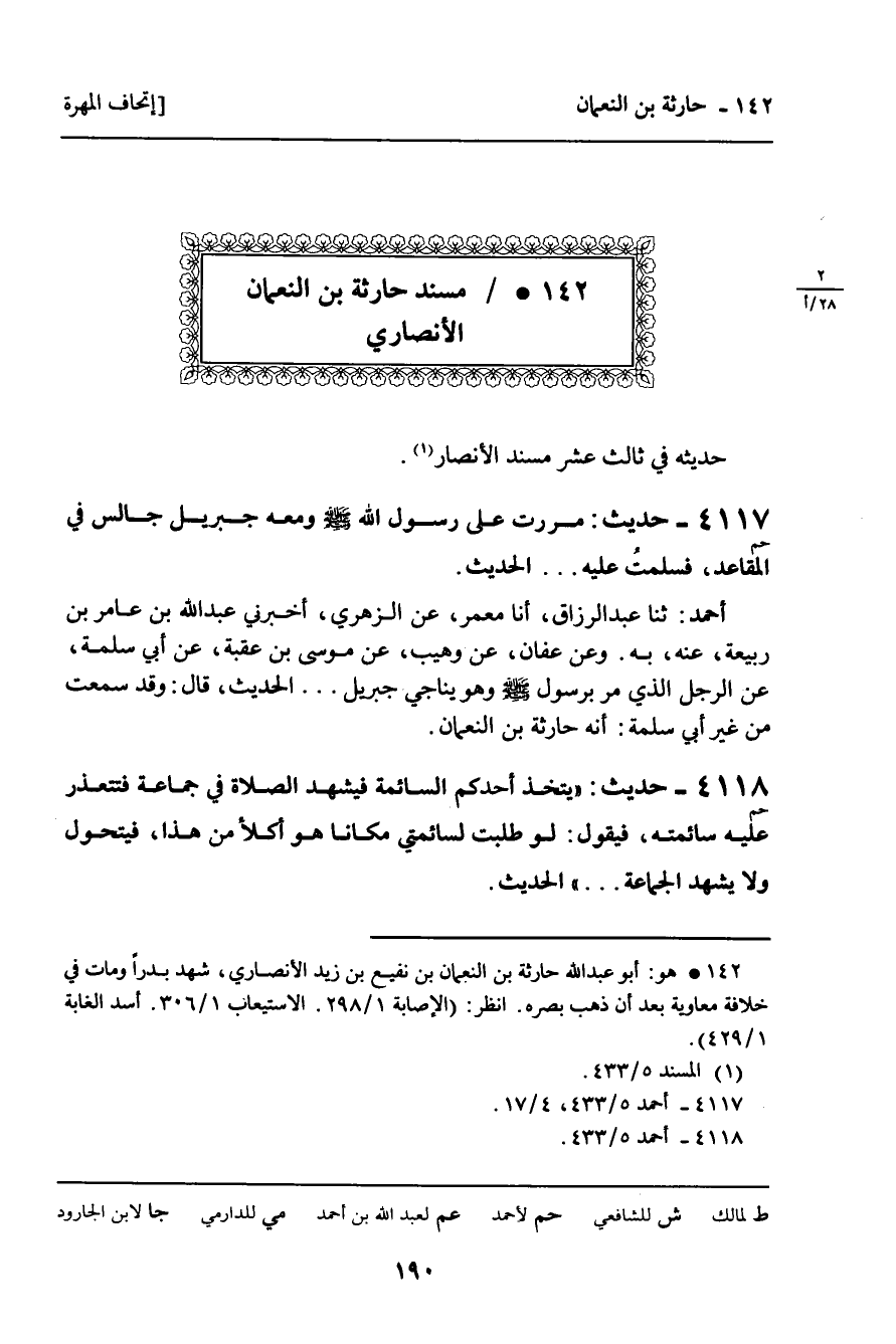 142 ـ مُسْنَدُ حَارِثَةَ بْنِ النُّعْمَانِ الأَنْصَارِيِّ