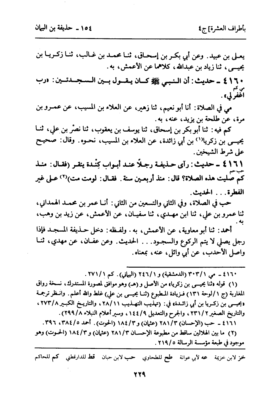 4161 - حَدِيثٌ (حب حم) : " رَآى حُذَيْفَةُ رَجُلا عِنْدَ أَبْوَابِ كِنْدَةَ يَنْقُرُ، فَقَالَ مُنْذُ كَمْ صَلَّيْتَ هَذِهِ الصَّلاةَ؟ قَالَ: مُنْذُ أَرْبَعِينَ سَنَةً. فَقَالَ: لَوْ مُتَّ مُتَّ عَلَى غَيْرِ الْفِطْرَةِ. . . " الْحَدِيثَ.