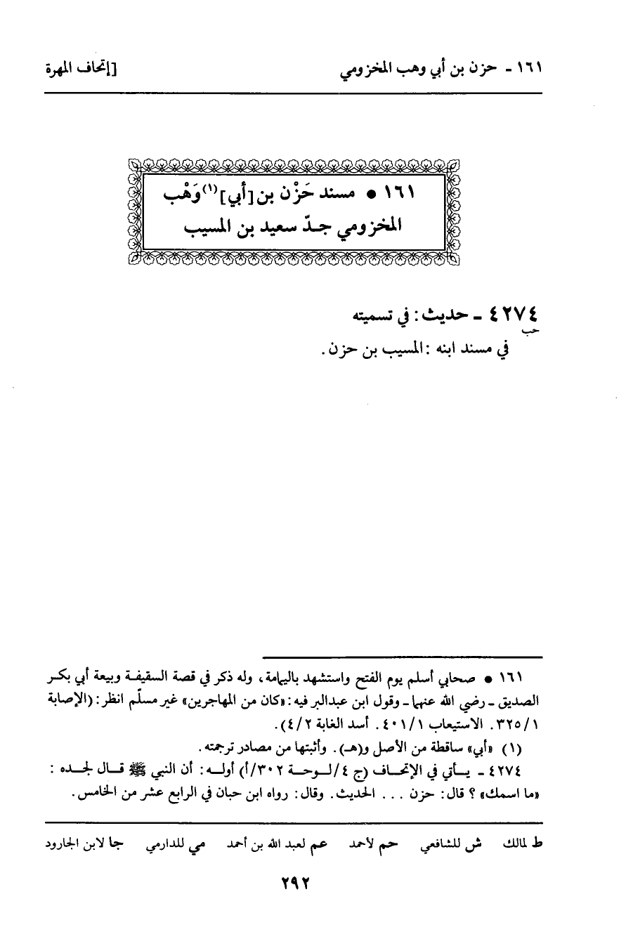 161 ـ مُسْنَدُ حَزْنِ بْنِ أَبِي وَهْبٍ الْمَخْزُومِيِّ جَدِّ سَعِيدِ بْنِ الْمُسَيِّبِ