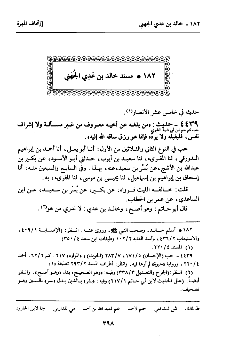 182 ـ مُسْنَدُ خَالِدِ بْنِ عَدِيٍّ الْجُهَنِيِّ