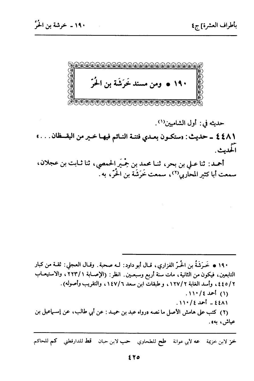 190 ـ وَمِنْ مُسْنَدِ خَرَشَةَ بْنِ الْحُرِّ