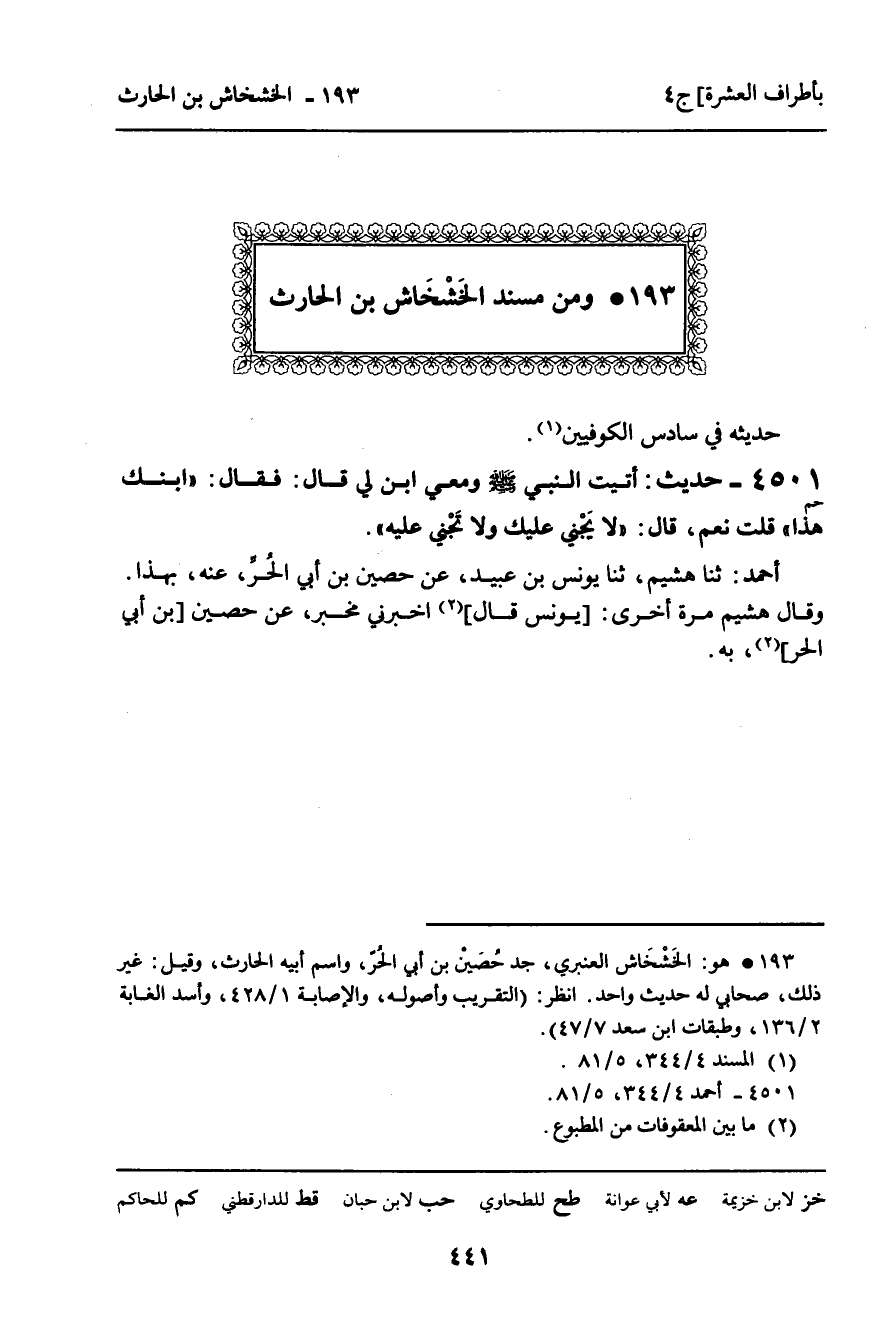 193 ـ وَمِنْ مُسْنَدِ الْخَشْخَاشِ بْنِ الْحَارِثِ