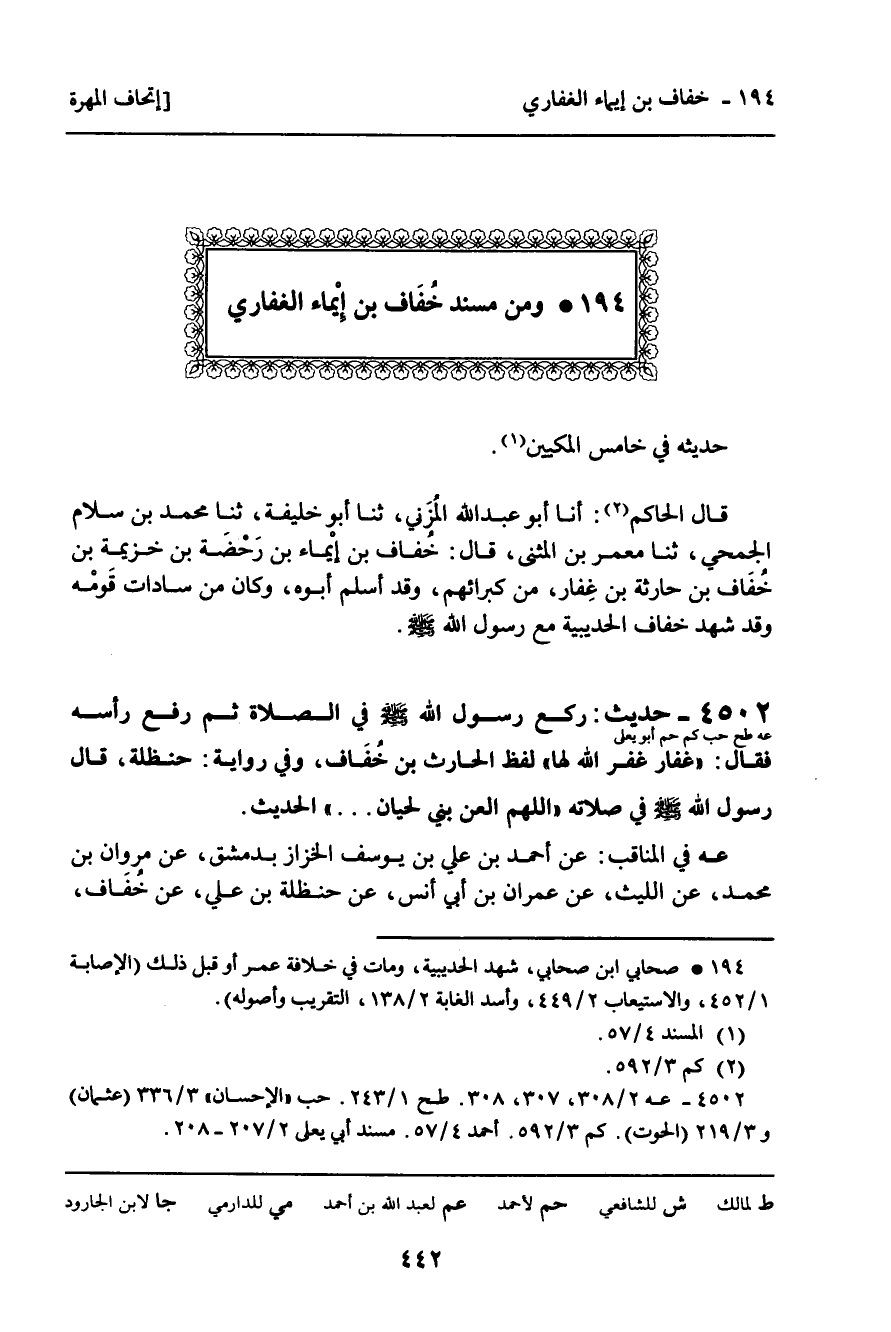 194 ـ وَمِنْ مُسْنَدِ خُفَافِ بْنِ إِيمَاءَ الْغِفَارِيِّ