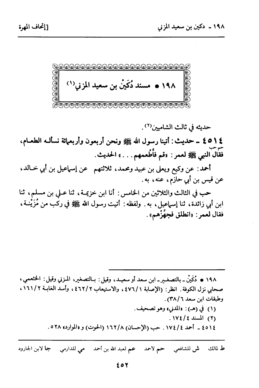 198 ـ مُسْنَدُ دُكَيْنِ بْنِ سَعِيدٍ الْمُزْنِيُّ