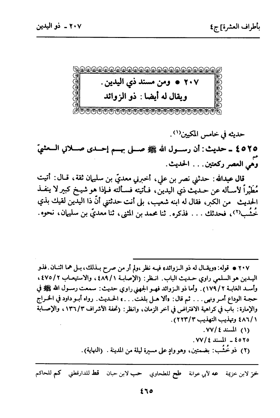 207 ـ وَمِنْ مُسْنَدِ ذِي الْيَدَيْنِ.